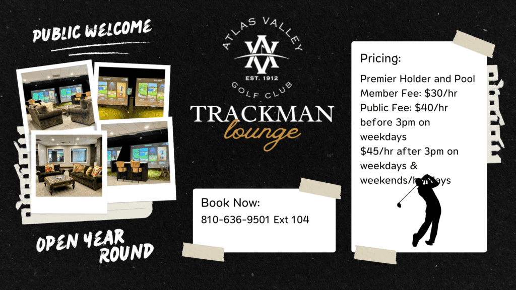 Our newly renovated Trackman Lounge is now open year round. Food and beverage service is provided by The Valley Grille. The Trackman Performance Studio 9 Software provides our guests with training sessions, hole play, games, tournaments and much more. If you are looking to better your game on the off season, the combination of radar and camera tracking has led to a paradigm shift in the golf simulator experience. Our latest model software allows for unsurpassed accuracy, and actionable golf swing data that can be tracked on the Trackman App and kept for your analysis. To see our available slots visit our simulator tab or call us at 810.636.9501 to book your time.